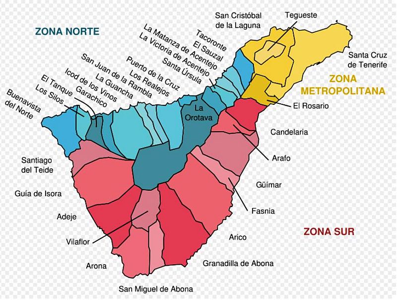 Zone 2 ist La Laguna mit der einzigen Universität der Kanarischen Inseln sowie Bajamar, Punta del Hidalgo und das geschichtsträchtige Tacaronte.