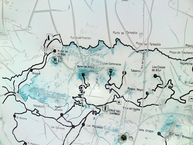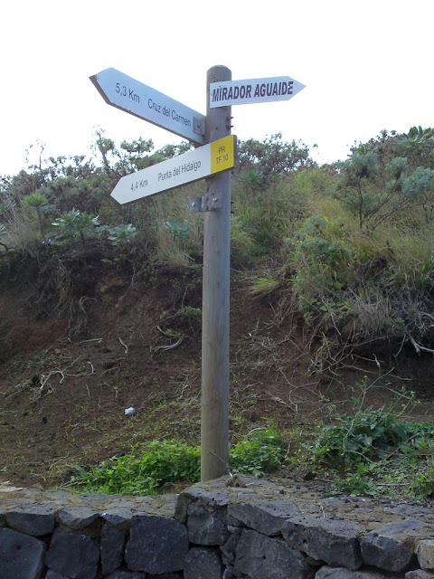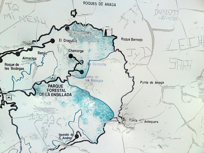 Zitat Vilaflor: "Ich fuhr mit dem Bus von La Laguna nach Punta del Hidalgo. In der Nähe der Endstation fand ich ein feines Schild, das schon jede Menge "Künstler" berabeitet hatten. Eigentlich hatte ich gar keinen genauen Plan, wie ich den Norden Teneriffas am besten durchlaufen sollte.