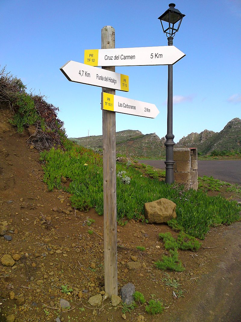 Wo waren wir im zweiten Teil stehengeblieben? Wir sind immer noch im Gemeindegebiet von San Cristobál de La Laguna und auf dem Weg zum Faro in Punta del Hidalgo. Das reichlich zerkratzte Schild dient uns immer noch zur Orientierung.