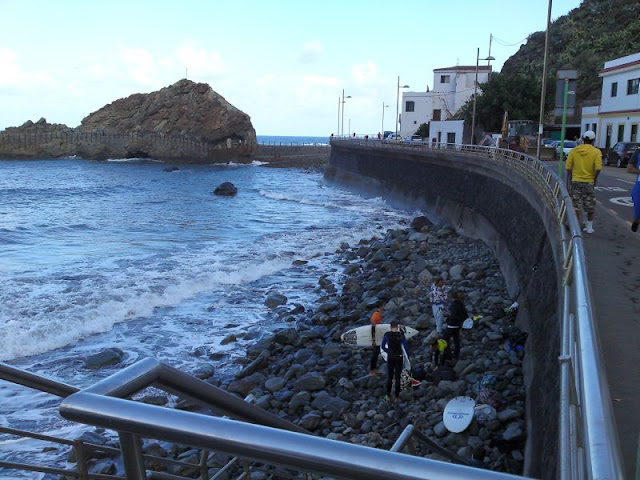 (Santa Cruz de Tenerife, Anaga) Dieser Strand ist umgeben von hohen Felsen und liegt in einer geschützten Zone. Manchmal ist das Baden wegen hoher Brandung gefährlich, dafür sieht man Surfer, die Wellen abreiten, während wir die atemberaubende Landschaft geniessen und es gibt mehrere Restaurants, in denen man gut Fisch essen kann.