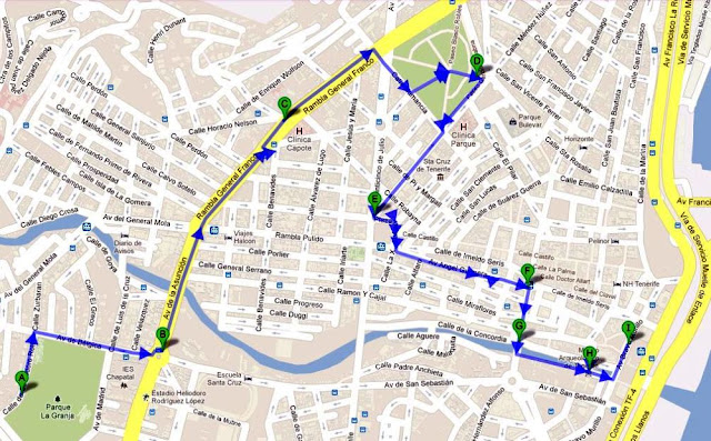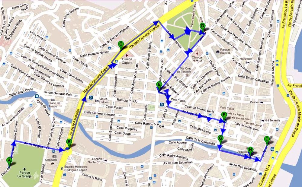 Zunächst vom Parque La Granja zum Parque García Sanabria (A - D).