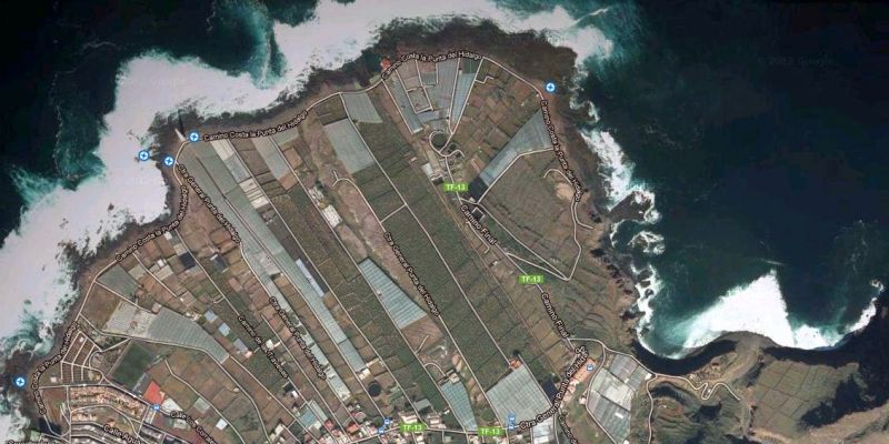 ZitatWir beginnen die Tour am Parkplatz neben der Wendeschleife des öffentlichen Busses in Punta del Hidalgo und folgen dem rechts abzweigenden betonierten Fahrweg bei der Tafel „Chinamada“. Vorbei an einem halb verfallenen Gebäude gelangen wir in den Grund des Barranco del Rio. Ab hier kann man kann den Weg bis Chinamada kaum noch verfehlen.