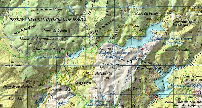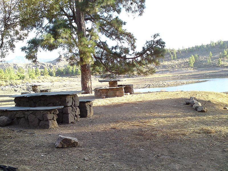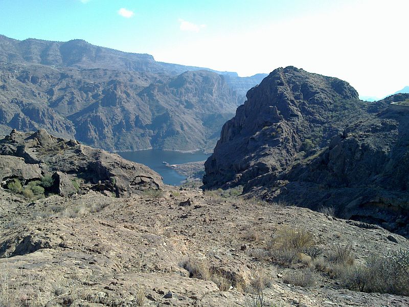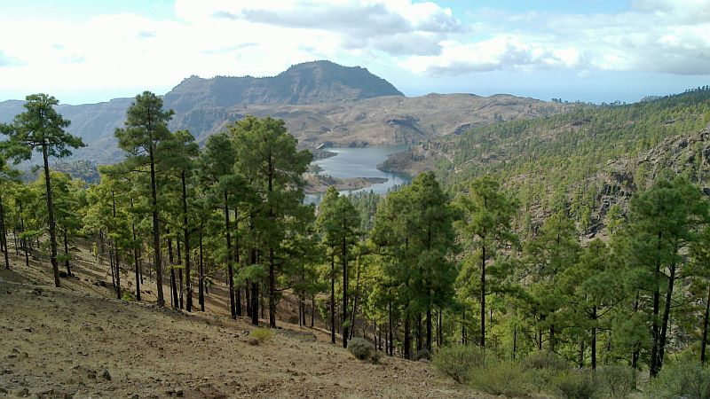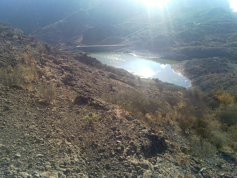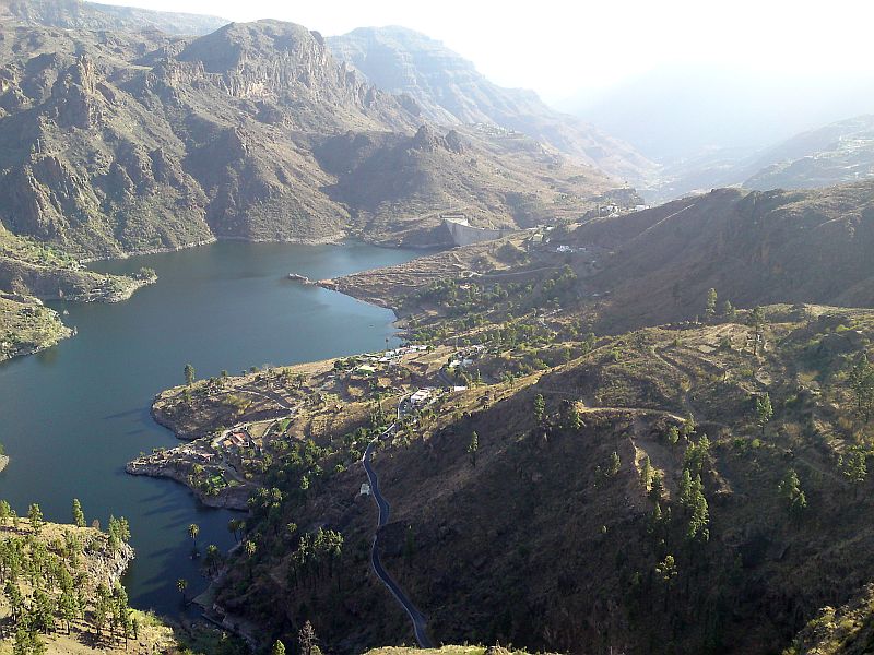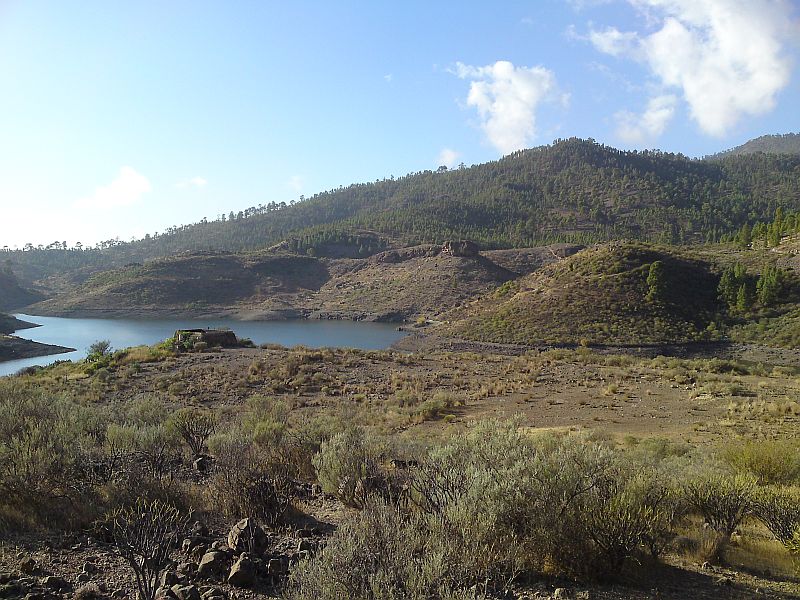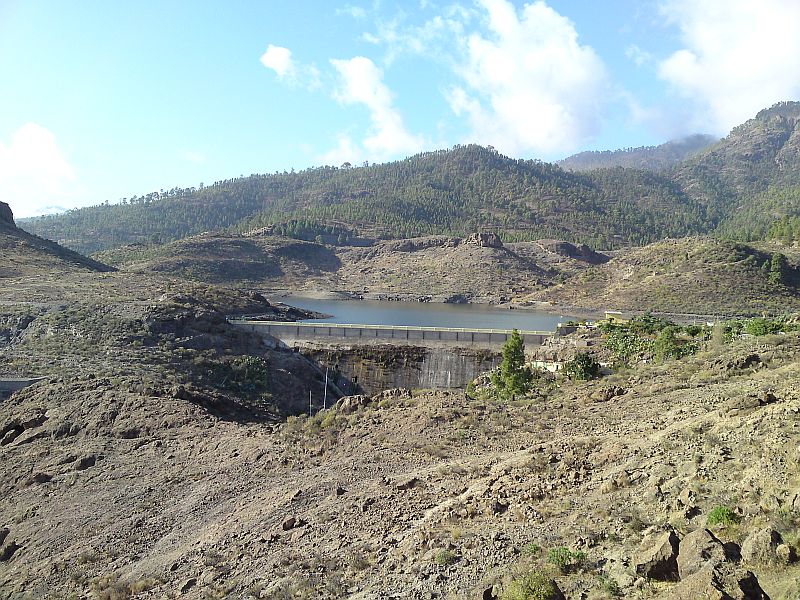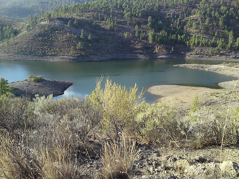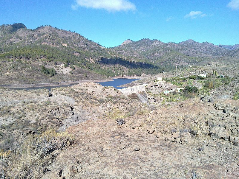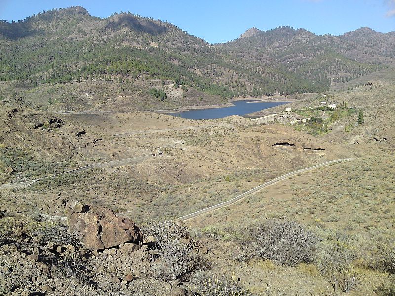 Zitat Vilaflor: "Man erhält einen guten Gesamtüberblick. Gut zu sehen ist auch, dass die Seen in ganz unterschiedlichen Höhen liegen. Der Presa de Soria auf ca. 600 m Höhe und der Presa Cueva de las Ninas auf über 900 m Höhe. Gut sind auch die das Gebiet einrahmenden Höhen der Pinares Pilancones und Pajonales und der Lomo de la Palma - dahinter gelangt man zum See von Chira, der auch auf einer Höhe von ca. 900 m liegt - zu sehen. Eine ganz besondere Landschaft, die so nur auf Gran Canaria existiert."