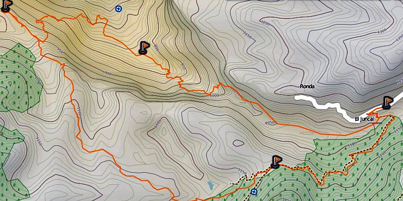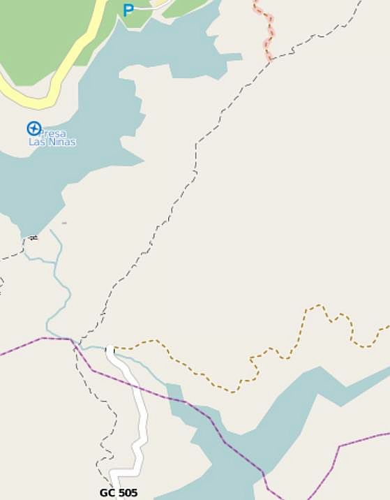 Hier die Karte mit dem Camino (blau gestrichelt), der direkt von der GC 505 abzweigt.