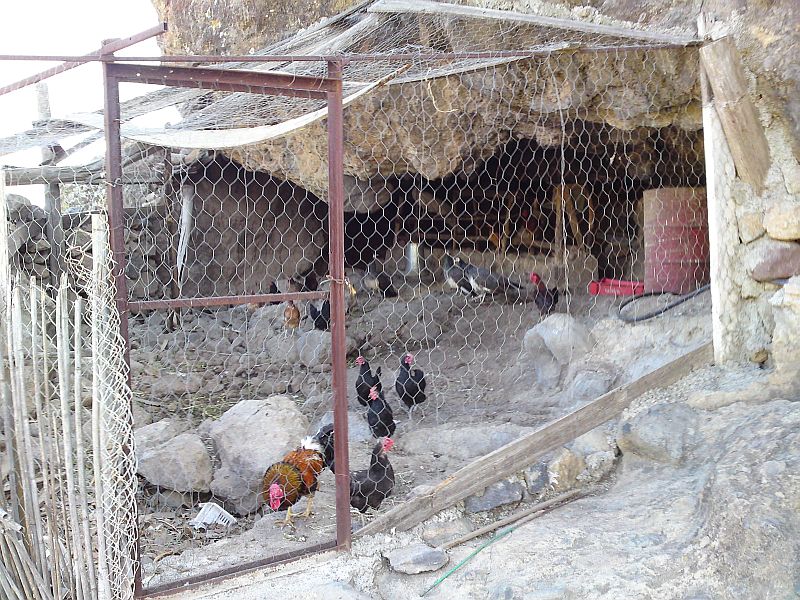 Zitat Vilaflor: "Ich beschließe, in den Barranco abzusteigen, um dann auf der anderen Seite wieder aufzusteigen. Die Hühner sind meine Zeugen. Sieht alles schlimmer aus, als es ist. Die Headlight, eine sehr lichtstarke, leuchtet alles gut aus. Es geht zunächst steil bergab".