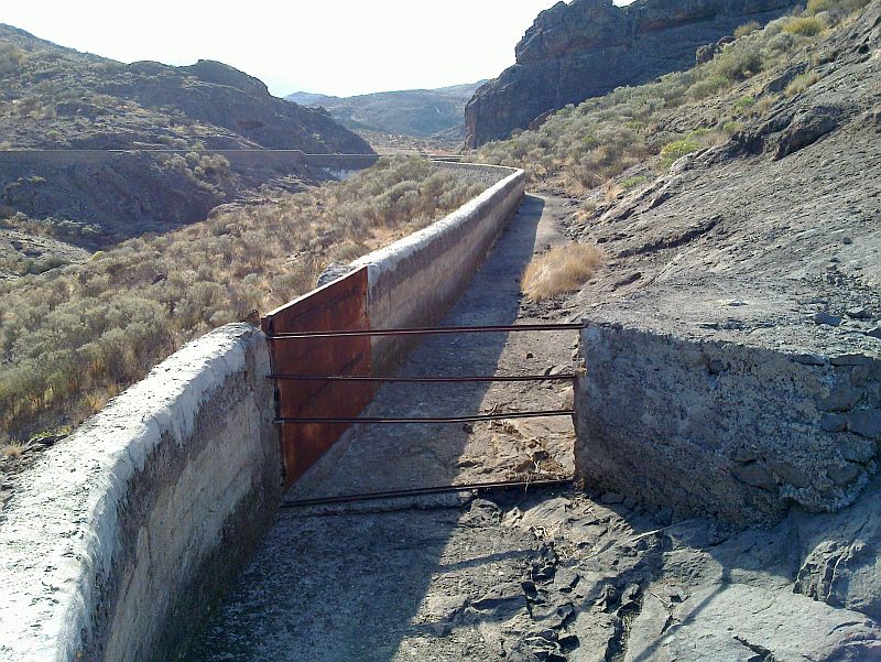 Diese Roue will ich heute mal näher beleuchten. Man folgt einfach einem Wasserrohr, dass zu dem Wasserkanal in ca. 830 m Höhe führt, der in der Wand verläuft, die von der Majada Alta steil nach Soria abfällt.